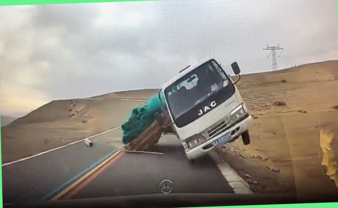 Неуправляемый грузовик врезался в легковушку в Китае
