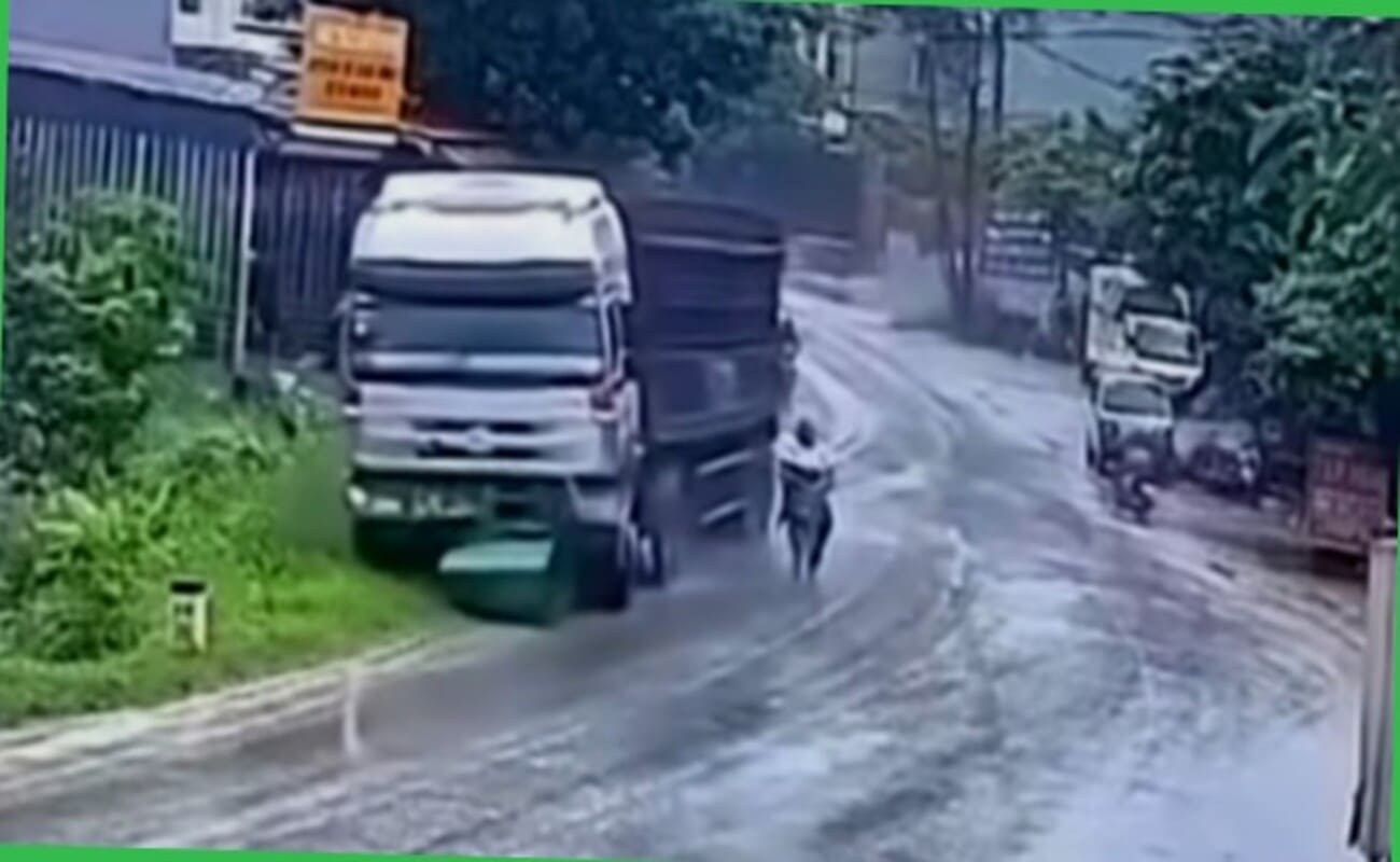 Пожилая вьетнамка на велосипеде отправила фуру в кювет