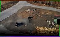 Камера наружного наблюдения, установленная в пустынной сельской местности в Поднебесной запечатлела волнительные моменты из жизни местной жительницы, выгуливающей собак.