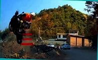 На глазах у участника дорожного движения, прокладывающего маршрут на своей легковушке по скалистой местности в Поднебесной, мотоциклистка неожиданно покинула магистраль.