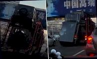 Участник дорожного движения запечатлел из салона своей легковушки драматичный инцидент, произошедший по вине водителя, работающего на компанию Jiaye Logistics.