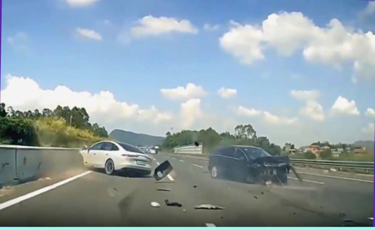 ДТП с участием трёх автомобилей попало на видео в Китае