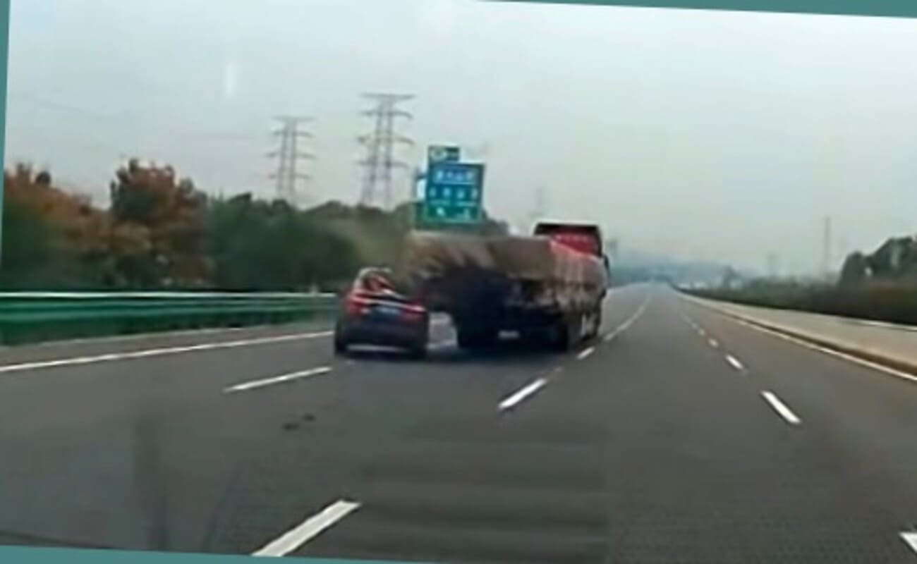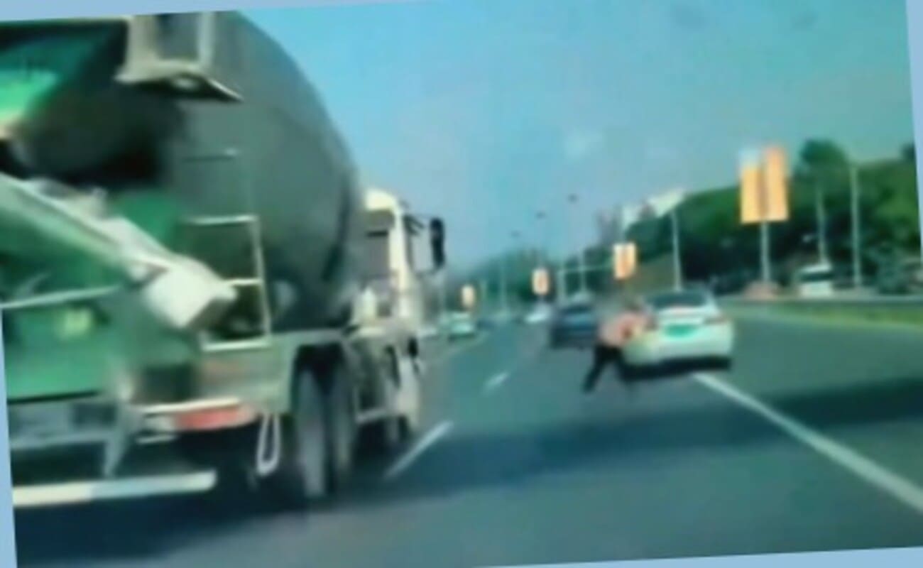 Китаянка пробежала по автомагистрали и едва не угодила под колёса автомобиля
