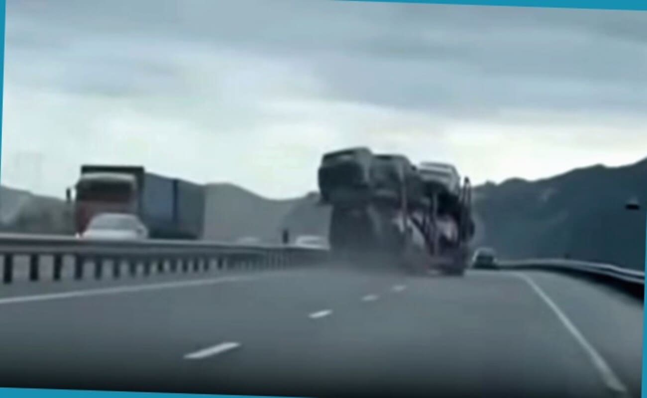 Лопнувшее колесо у автовоза чудом не угробило несколько новых автомобилей