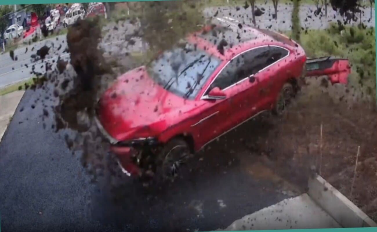 Огромный камень скатился с холма и расплющил автомобиль В КНР