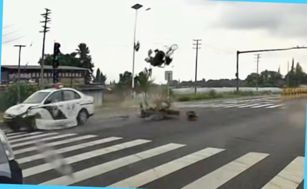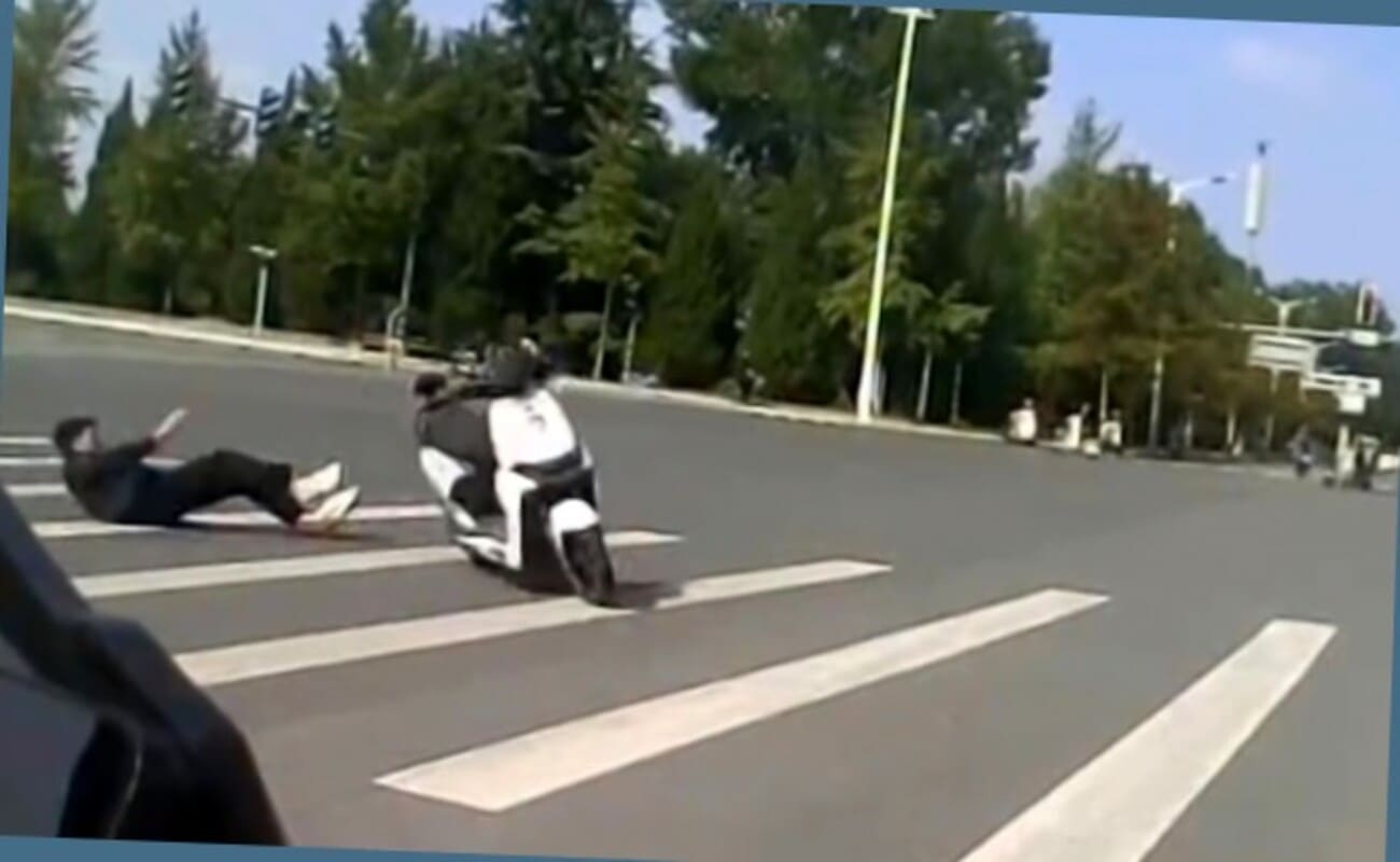 Китайский байкер чудом не лишился жизни, оказавшись на пути у легковушки