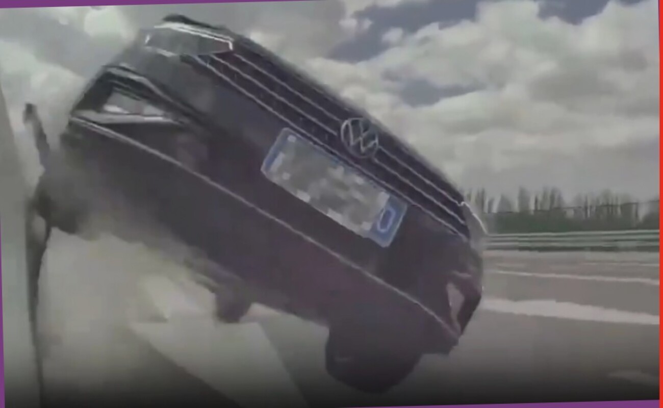 Водитель внедорожника не успел объехать легковушку и прокитился прямо по её крыш