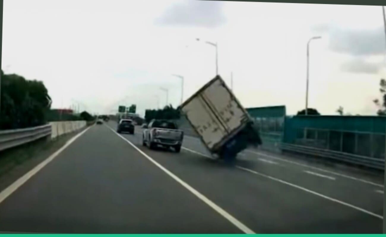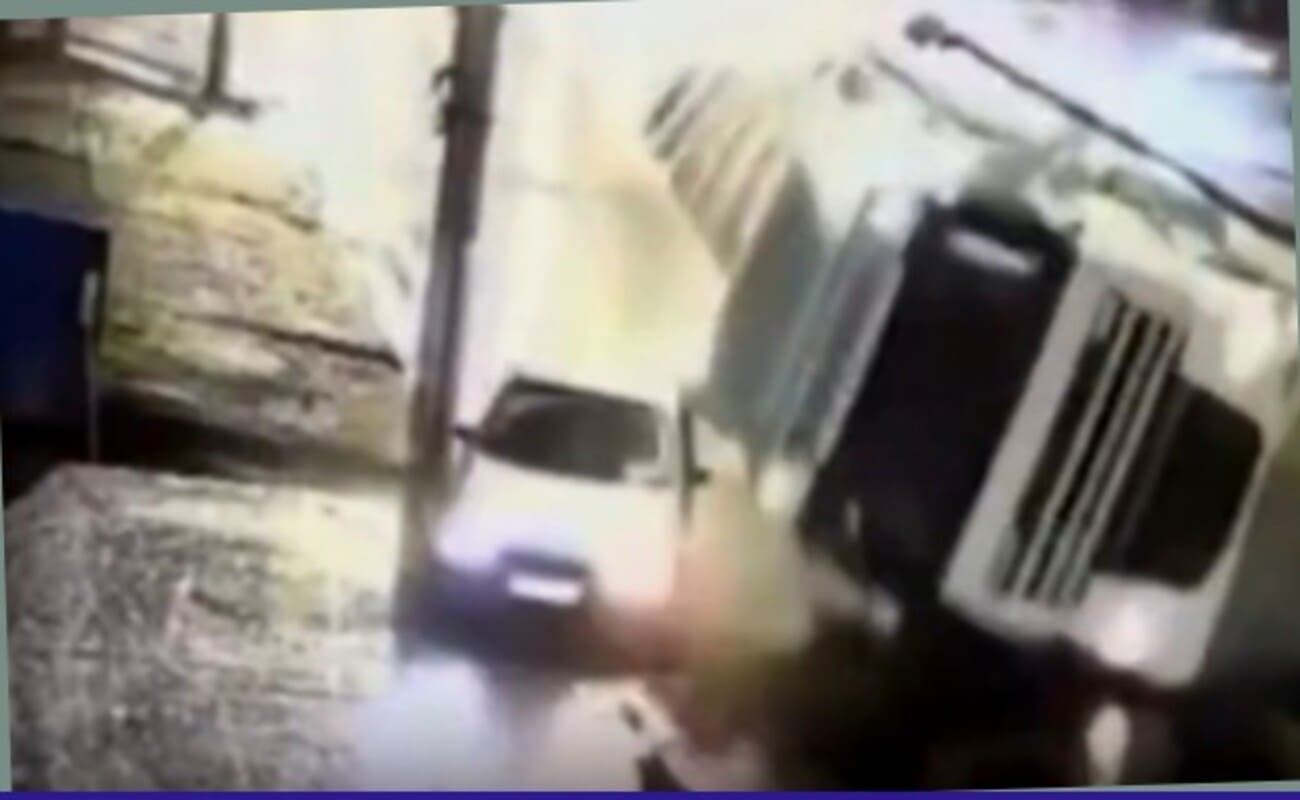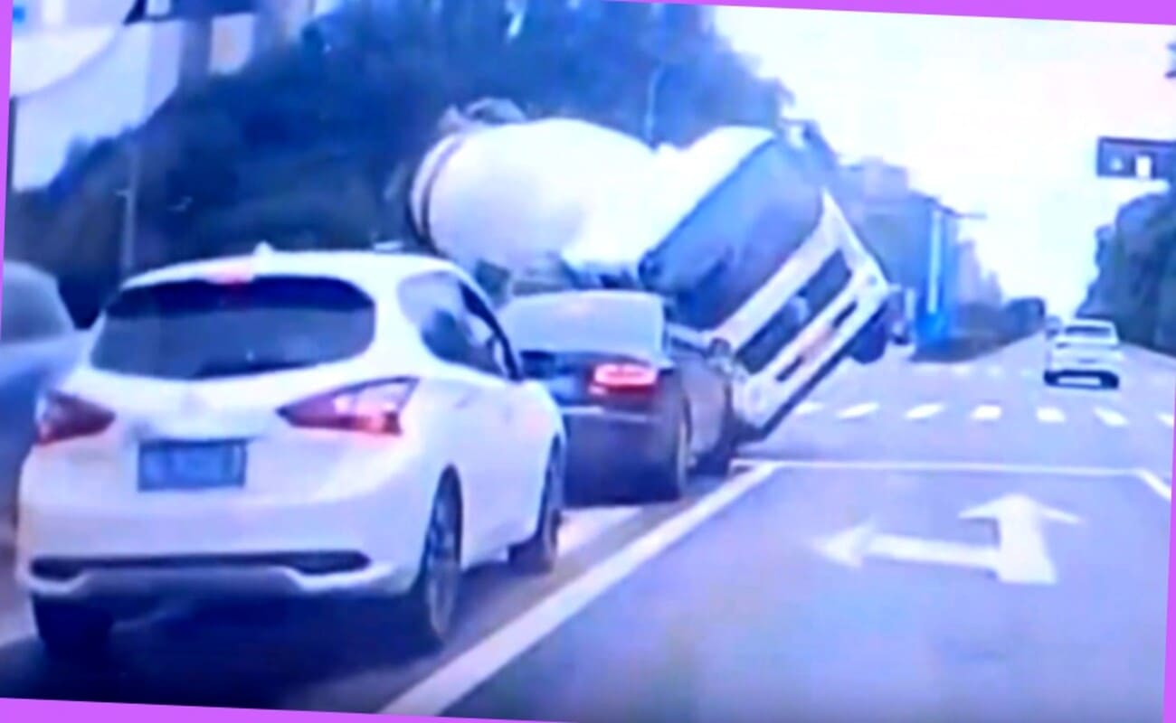 Крайне неудачное перестроение автофургона попало на видео в КНР