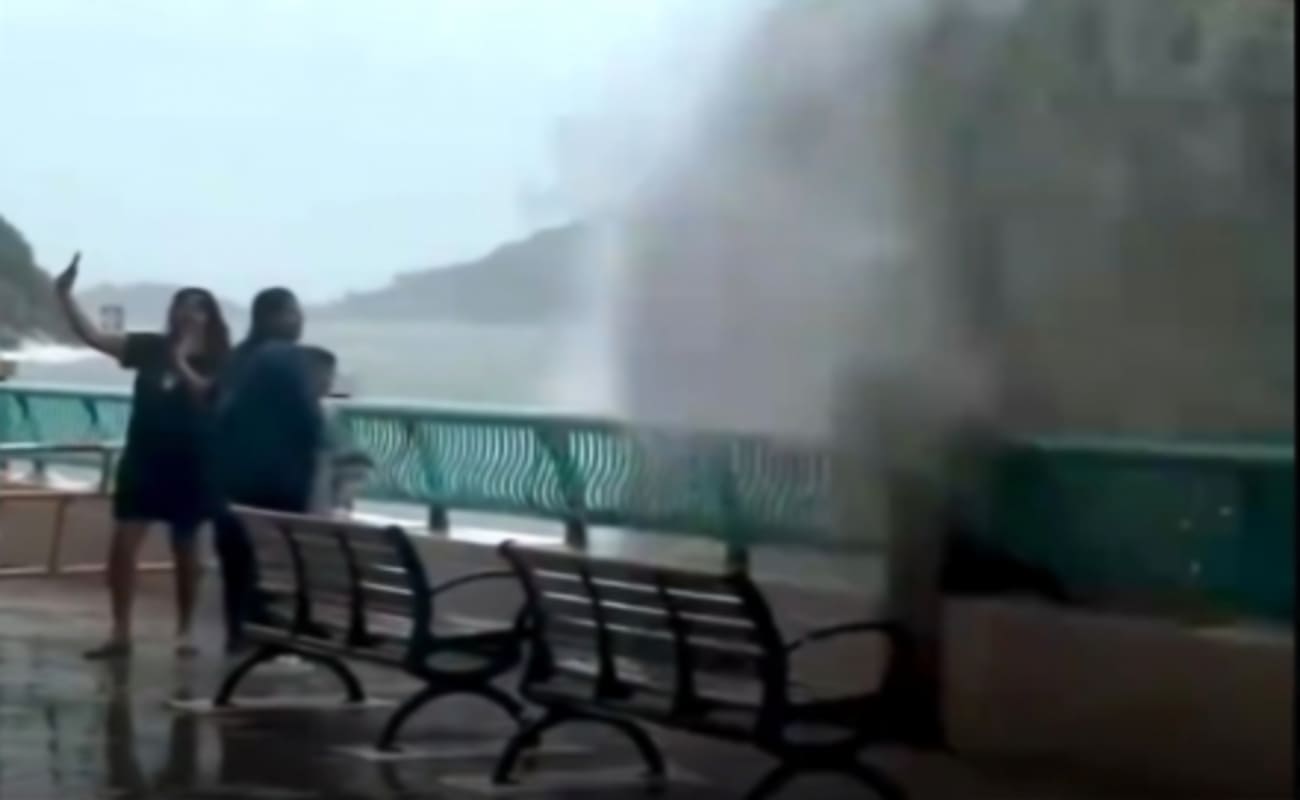 Туристы, запечатлеваясь на фоне моря, угодили под гигантскую волну