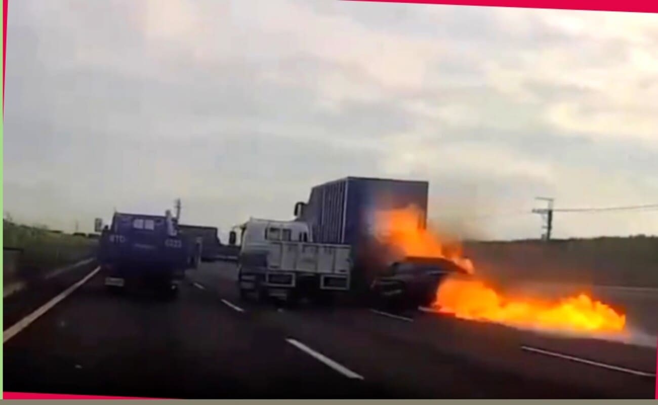 Шокирующее ДТП с загоревшимся автомобилем попало на видео в Китае