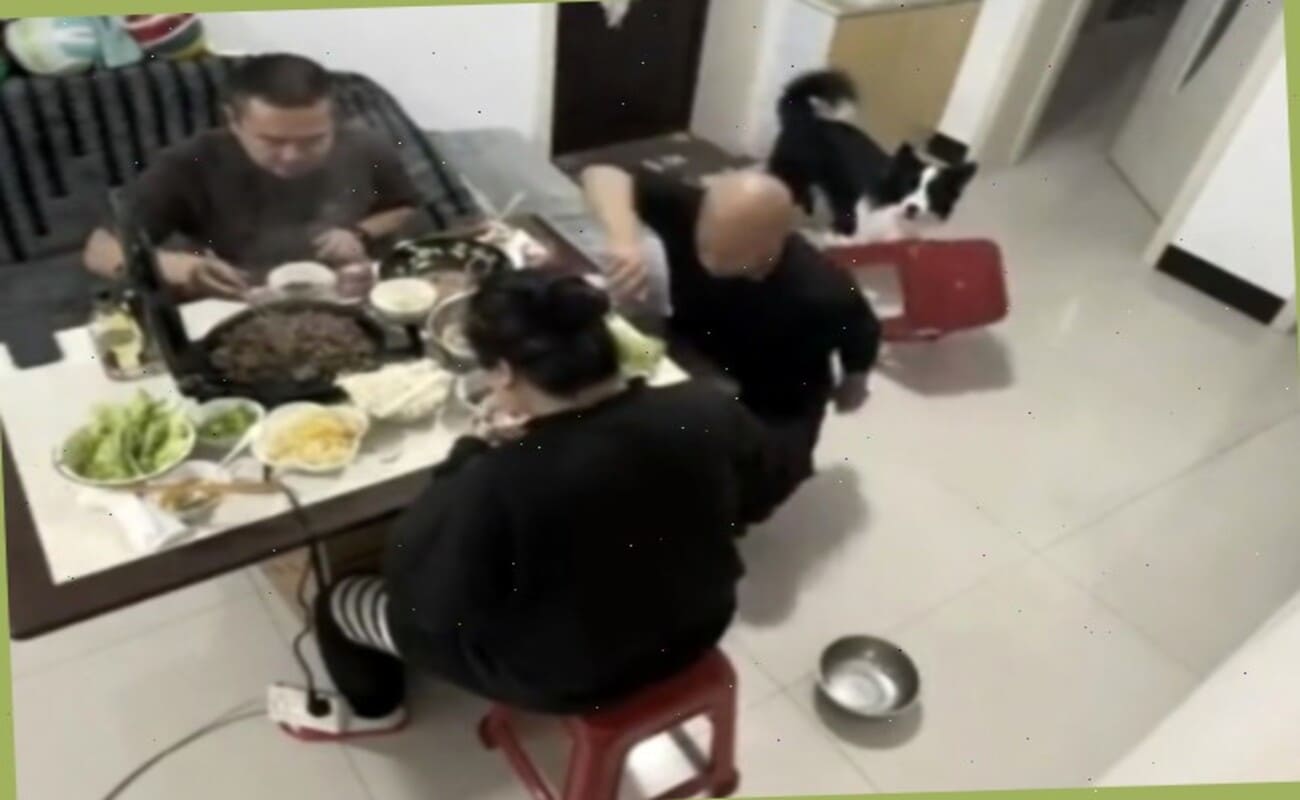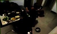 Совместный ужин троих китайских приятелей был запечатлён видеокамерой, установленной в помещении.
