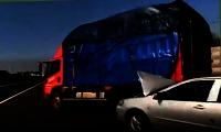 Грузовик завалился на бок и чудом не раздавил автомобиль
