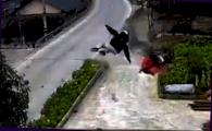Драматичный полёт мотоциклиста попал на видео в КНР