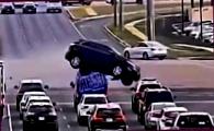 Стремительный полёт автомобиля попал на видео на оживлённой магистрали