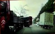 Автовладелец чудом спасся от наезда грузовика в своей легковушке