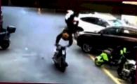 Камера наружного наблюдения, находящаяся в спальном районе, в одном из населённых пунктов в Поднебесной, запечатлела рискованный манёвр в исполнении местного жителя.