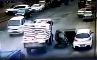 Стремительное происшествие, обошедшееся без жертв, было зафиксировано камерой наружного наблюдения в Китае.