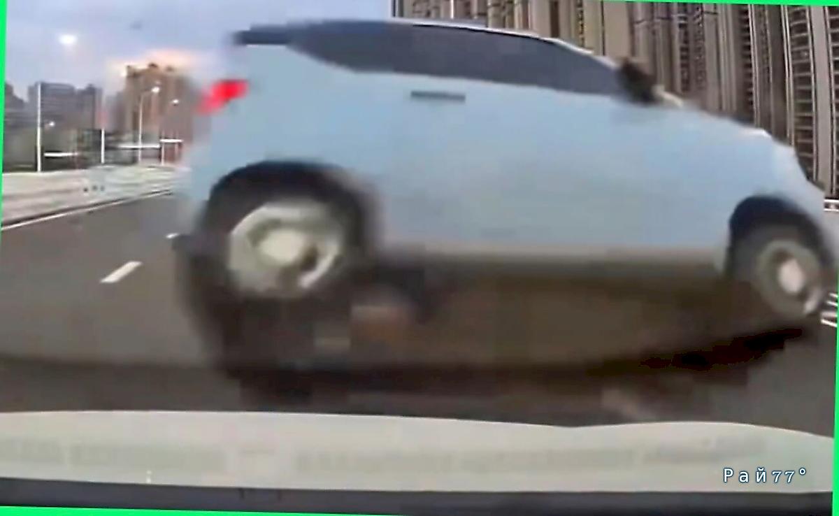 Драматичная аварийная ситуация, произошедшая на днях на оживлённом участке автомагистрали в китайском мегаполисе, была запечатлена одним из участников ДТП.
