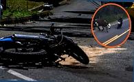 Авария по вине коровы, выбежавшей перед мотоциклистом, попала на видео в Колумбии