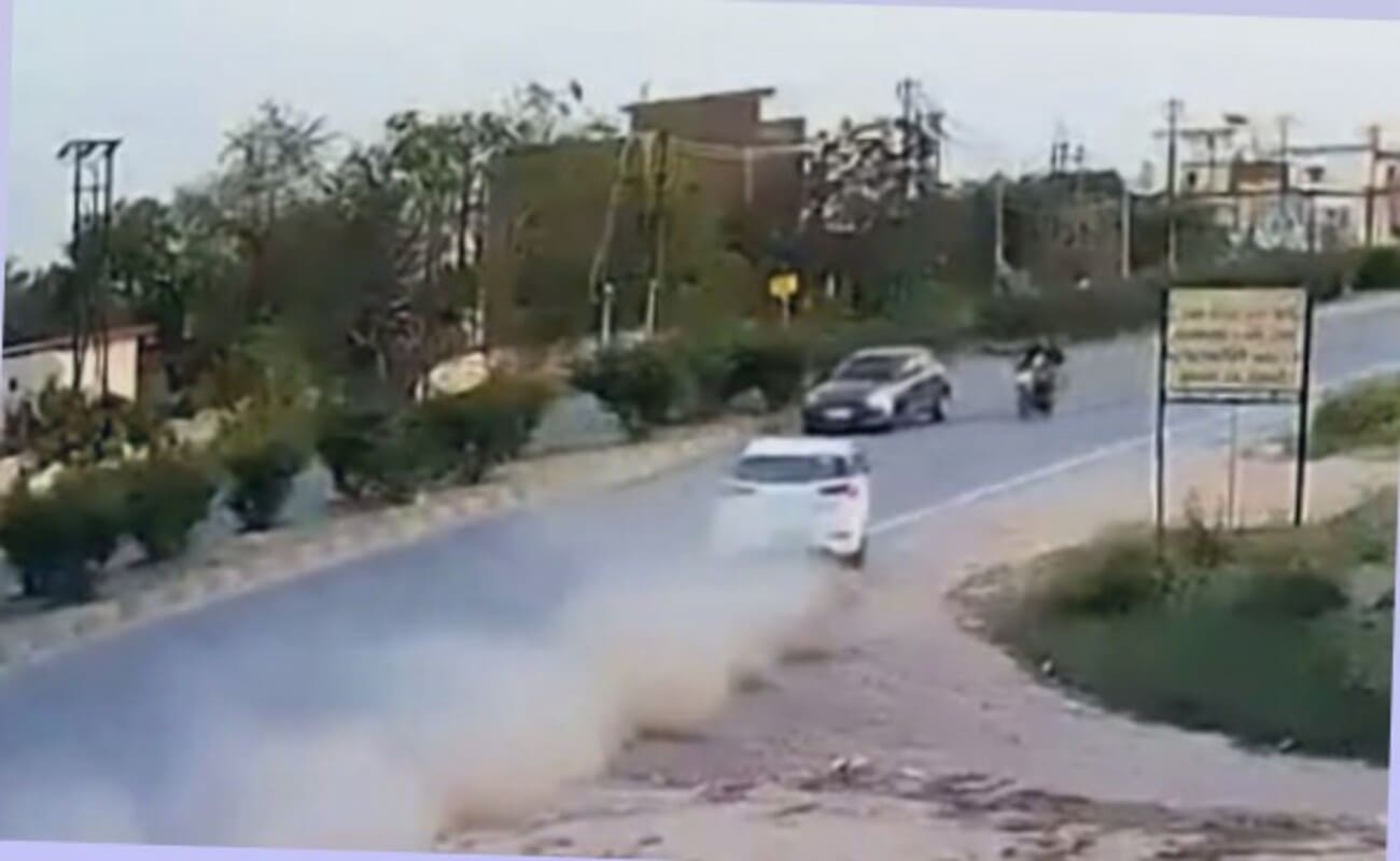 Автомобиль потерял управление и сбил мотоциклистов в Индии