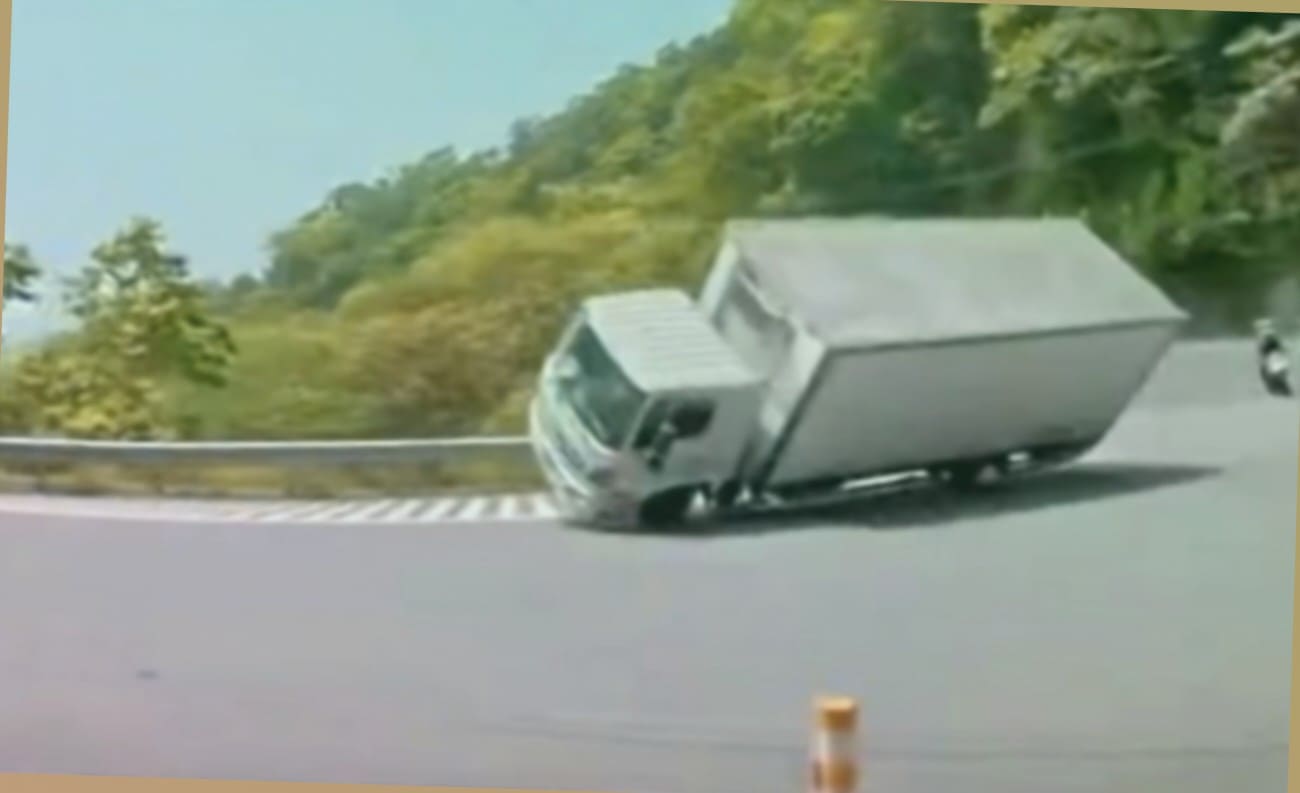 Фургон опрокинулся на глазах у мотоциклистки на Тайване